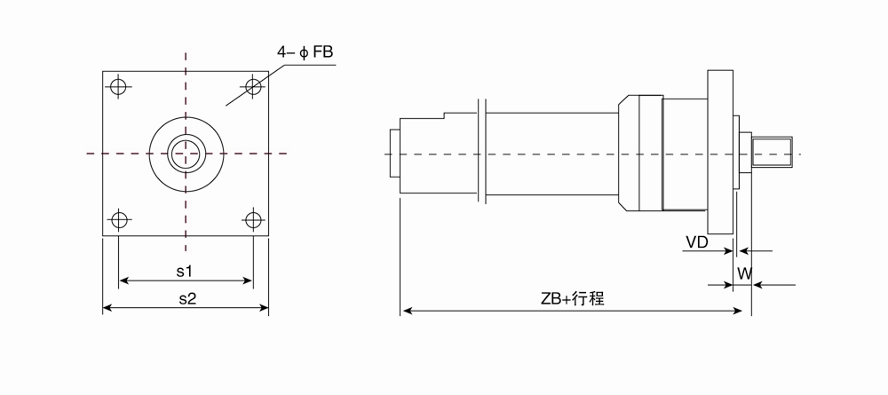 F1=頭部長方法蘭(用于缸徑D≤125);